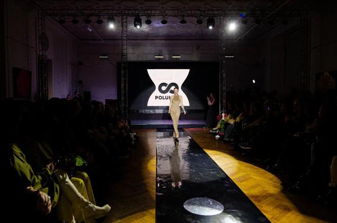 随着秀场音乐奏响,主灯光聚焦 T 台,“汾华・俄裳”主题时装秀正式开场。在光影与音律的交织中,超模身着著名设计师打造的系列时装依次登台。模特以专业的台步节奏,演绎出一场流动的视觉盛宴,为现场嘉宾带来极具艺术质感与感染力的走秀表演。
