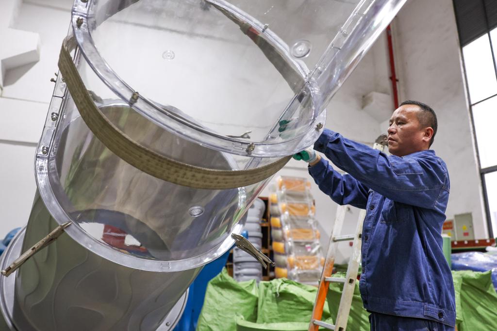 立本集团有限公司车间内,工作人员在组装一款无动力游乐设备。