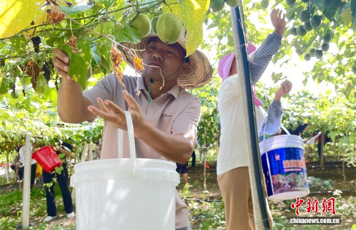 9月28日,果农正在采摘罗汉果。何茜 摄