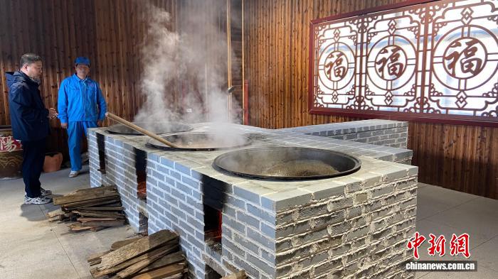 工人展示阿胶熬制工艺。孙婷婷 摄