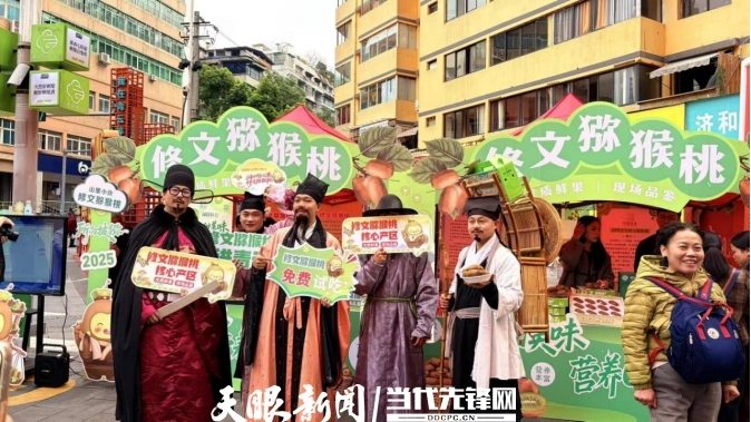 “逛公园偶遇饰演王阳明的演员诵诗,还可以免费品尝正宗的修文猕猴桃!”11月初,在贵阳黔灵山公园修文猕猴桃品牌推广现场,身着王阳明、奢香夫人服饰的演员吟诗起舞,将传统文化与猕猴桃品鉴巧妙融合,吸引大批市民游客驻足。