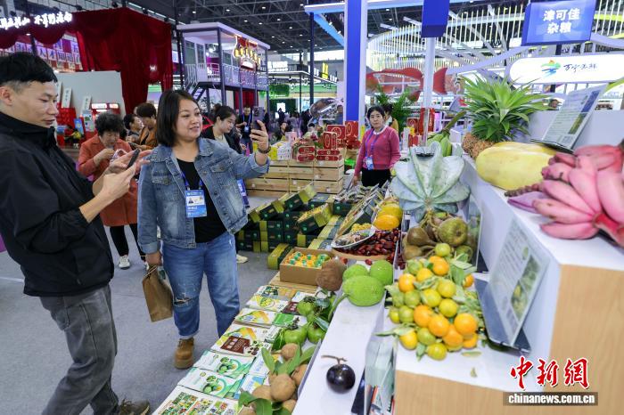 2025年第28届中国(海南)国际热带农产品冬季交易会期间,特色热带农产品吸引参观者。中新网记者 骆云飞 摄
