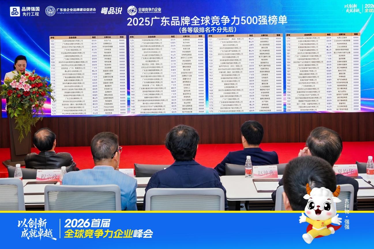 1月29日,2026首届全球竞争力企业峰会在广东品牌创新培育基地成功举办。