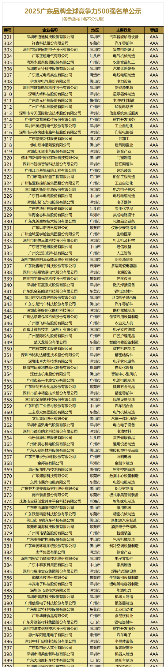 2025广东品牌全球竞争力500强完全名单