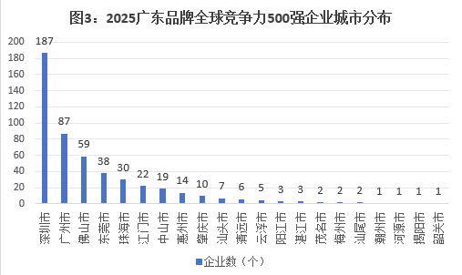 2025广东品牌全球竞争力500强企业城市分布状况