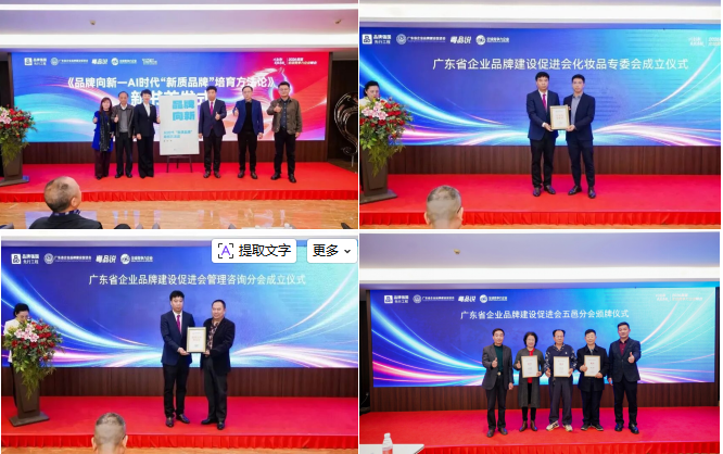 峰会同步落地多项赋能举措:“品牌广东公益平台”启动筹备,培育广东知名品牌,运营粤品说广东精品数字营销平台,致力为广东培育1000家“全球竞争力企业”品牌;“读书读城读企业”研学之旅首站将于1月30日走进云浮新兴县,探索县域经济与品牌发展融合路径;广东省企业品牌建设促进会管理咨询分会、化妆品专委会正式成立,将为细分行业提供专业品牌服务支撑。