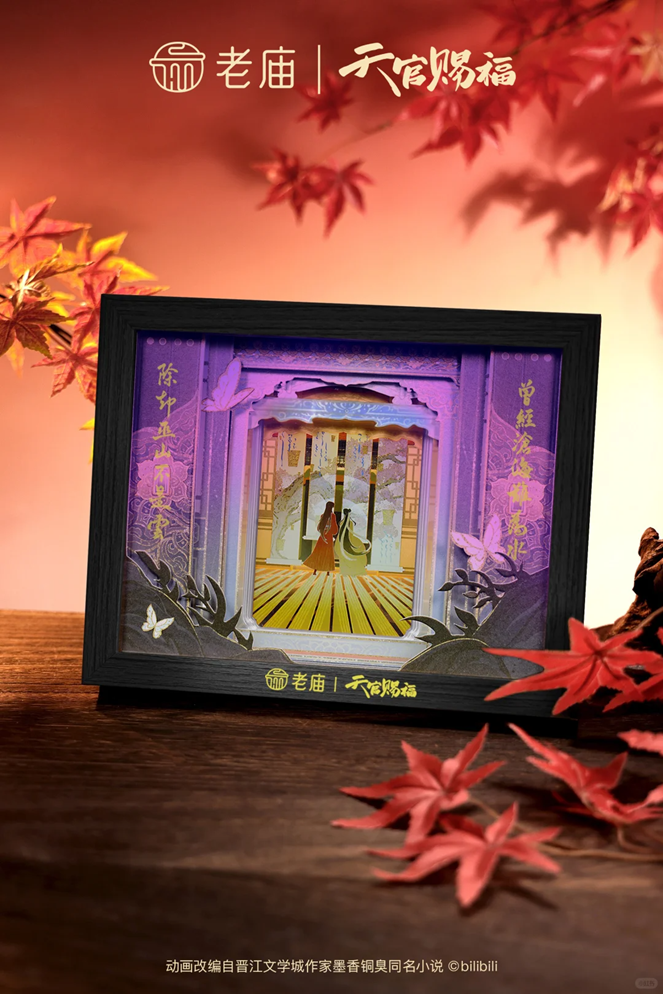 当下年轻消费市场中,“谷子经济”的崛起折射出新世代对情绪寄托与个性表达的需求。老庙捕捉到这一趋势,将黄金首饰与“谷子”文化结合,打造出兼具周边收藏与情感价值的“黄金谷”,以全新形式融入年轻人的生活场景,也成为他们表达喜好与信仰的一种方式。老庙与《天官赐福》动画的联名正是通过这种形式实现了共振——双方都以中国传统文化为灵感核心,以现代美学与年轻叙事方式进行再创造,更好地触达喜欢古风的泛二次元年轻人群,首度推出便收获了良好的市场反馈,在年轻受众人群中树立了老庙具有时代感的品牌形象。近日,老庙X《天官赐福》动画联名系列再度出新,推出限量款“兰夜题书”相框黄金画,以匠心金艺再现动画神韵,再次吸引到大批粉丝群体关注。