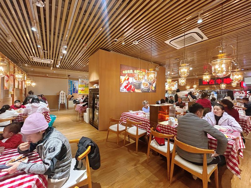 西贝首先对菜品制作流程动刀,核心是让“风味形成的核心环节回归门店”。十余道核心菜品完成现制化改造:儿童餐牛肉酱改为现炒、牛肉饼现做、猪排烩酸菜现切现炒。最直观的改变是羊肉串,从“中央厨房半成品”升级为“现切现穿现烤”,明档厨房里厨师的操作全程可见;鸡汤则放弃复热汤包模式,改为“早上6点点火,晚上10点熄火”的慢熬工艺,重新找回传统烹饪的烟火气。