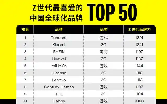 腾讯在游戏品类、小米在3C品类、SHEIN在电商品类排行榜中分列第一