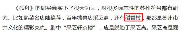 在剧中,男主角的父亲顾希形频繁光顾的“观前街”,此处是苏州的市中心,也是著名商业街。而人们耳熟能详的中华老字号——“稻香村”便诞生于此地,如今其原址店仍然屹立在苏州观前街,据了解,这可能是中国唯一一家近三个世纪连店址都没有变过的店铺。