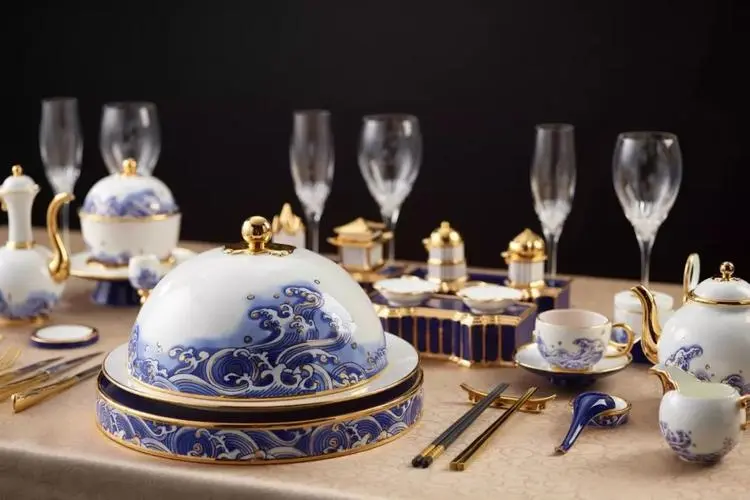 通过一次次国宴,不仅展现中国陶瓷品牌将传统文化与当代语言巧妙融合的设计理念,更成就一次次陶瓷技艺高峰的攀登。比如“夫人瓷·西湖蓝”以晶莹剔透的高档强化瓷作胎体,采用独创的色釉分离技术及先进的高温金工艺。而博鳌亚洲论坛年会宴会上使用的“先生瓷·四海升平”,通过技术攻关,打破青花和金“相克”的传统工艺限制,将雅致青花和雍容金的色彩纹路相融合,实现视觉冲击。
